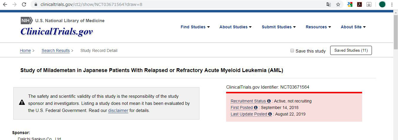「Clinical Trials_gov」サイトの治験情報(臨床試験)へリンクされてます。